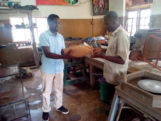 A ugandan sculptor Magimbi Aloysius Born I993 donated a wooden sculpture to UCASDR to support free skills Developmet in uganda through UCASDR